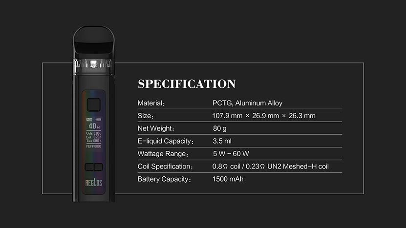 جهاز ايجلوس من يو ويل Uwell Aeglos Pod System Vape Mod Kit - VW 5~60W, 1500mAh, 3.5ml